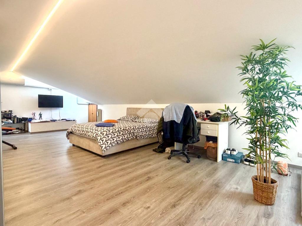 Situato all'ultimo piano di un edificio residenziale dotato di ascensore, l'immobile offre una disposizione funzionale con quattro locali ben distribuiti che si sviluppano su due livelli. Al primo livello troviamo la zona giorno che si compone di un luminoso e accogliente soggiorno e una cucina separata, entrambi con accesso al terrazzo. La zona notte presenta una camera matrimoniale e una doppia. A completare il piano vi sono due bagni completamente ristrutturati e un comodo ripostiglio. Al secondo piano troviamo una generosa e luminosa mansarda di 57mq.