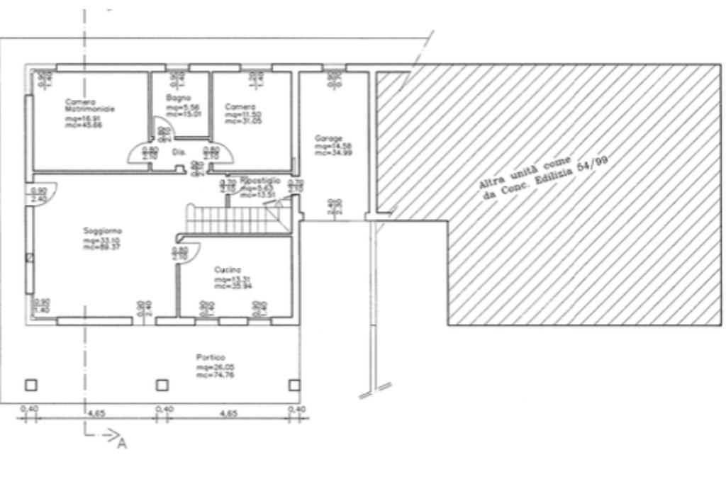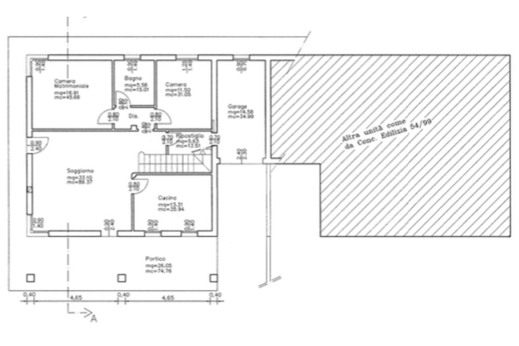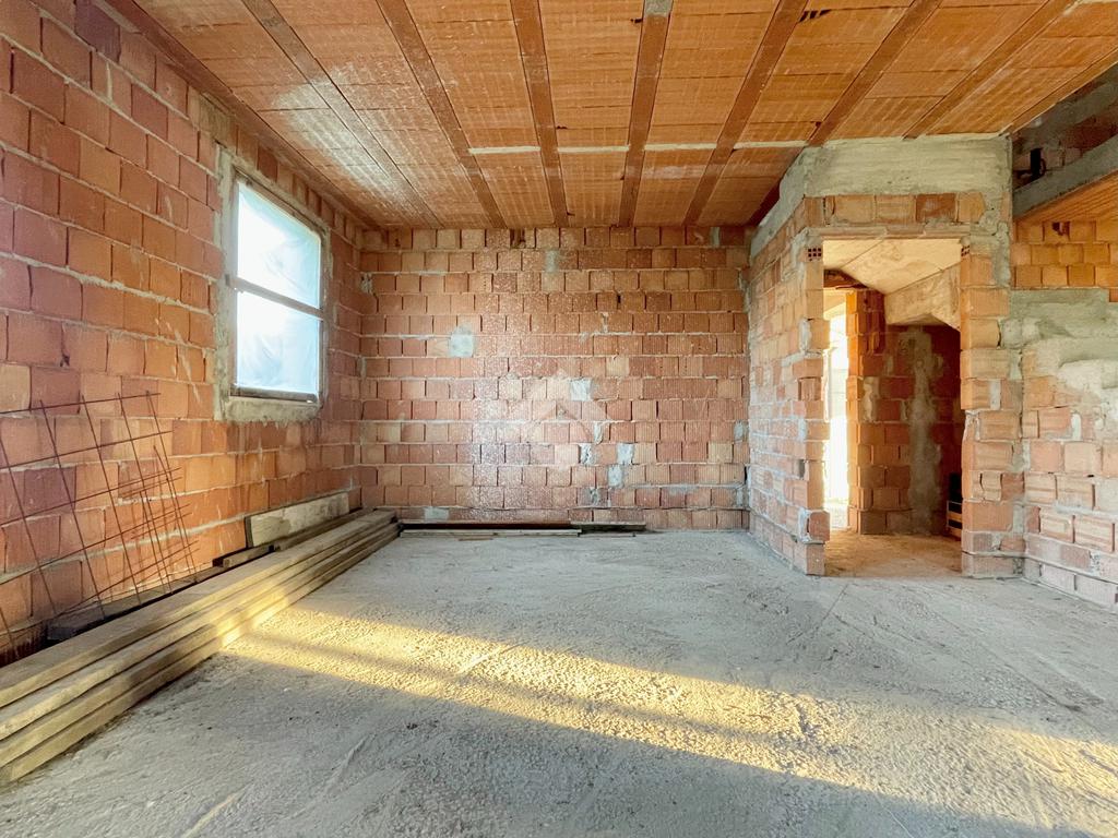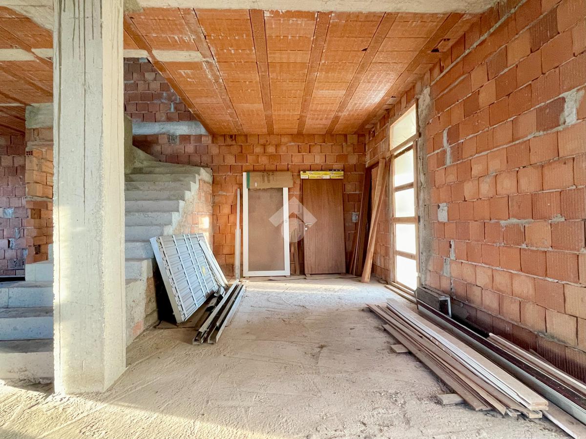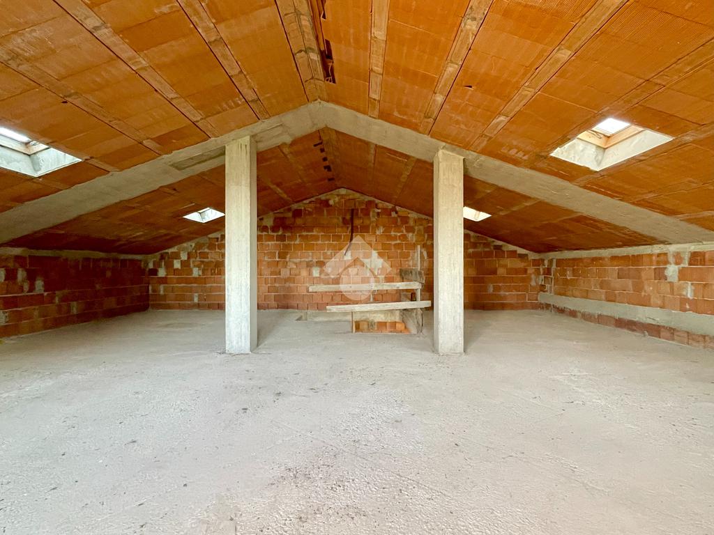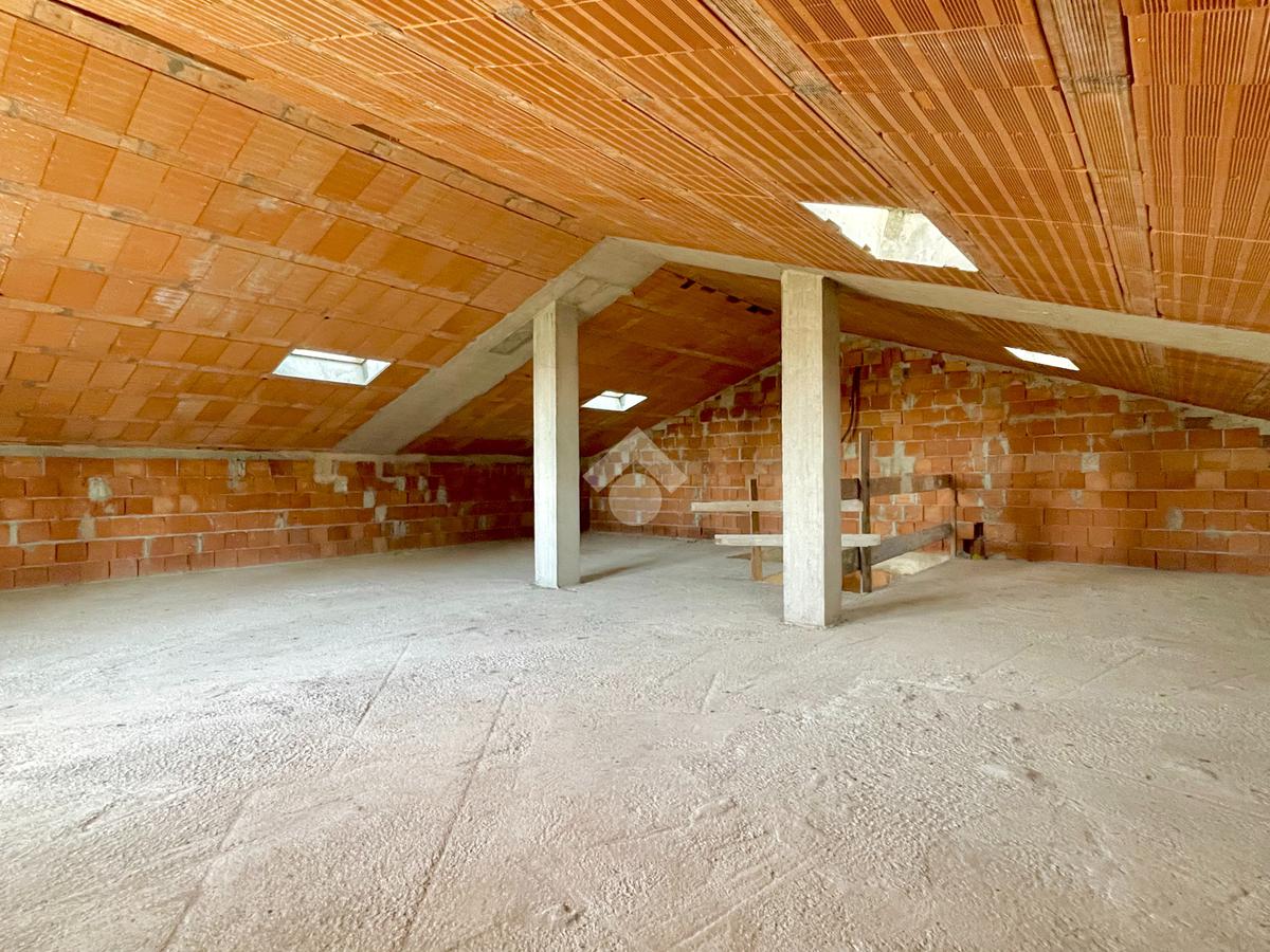 L'immobile presenta al piano terra la possibilità di creare una ampia zona giorno di 35mq con cucina separata, una camera matrimoniale e una singola, un bagno, un ampio ripostiglio e accesso diretto al box auto di 15mq. Il piano primo invece offre la possibilità di ricavare altre due camere da letto e presenta già la predisposizione per due bagni al piano.